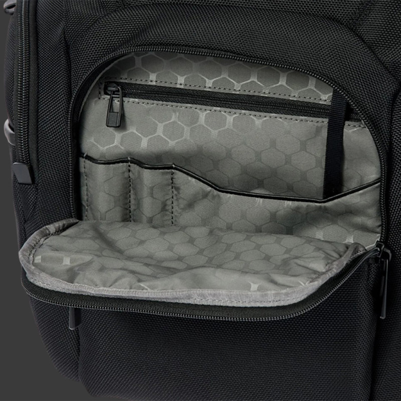 Der Roadster Daypack M von Porsche Design ist ein hochwertiger Business-Rucksack mit maximaler Funktionalität. Das strapazierfähige ballistische Nylon schützt Ihre Utensilien, während das große Hauptfach ein gepolstertes Laptopfach enthält. Zusätzlich bietet der Rucksack zwei Seitentaschen mit Reißverschluss, eine gut organisierte Fronttasche und gepolsterte Schulterriemen für optimalen Komfort. Gemeinsam mit dem italienischen Spezialisten Bric’s entwickelt.