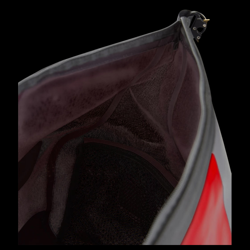 Dank des Reißverschlusses lässt sich die Tasche zur Aufbewahrung einfach zusammenrollen