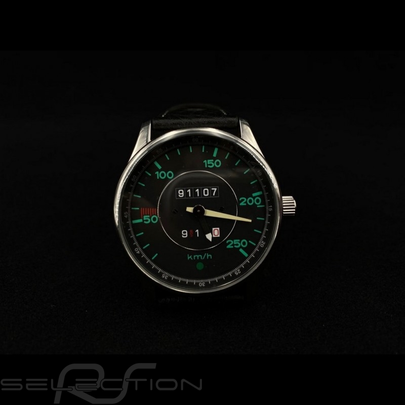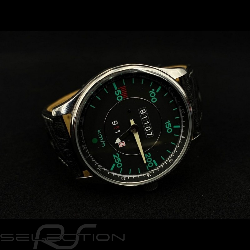 Porsche 911 Klassische Tachometer Uhr chrom Gehause / schwarz Wahl / grüne Zahlen Hergestellt in Deutschland