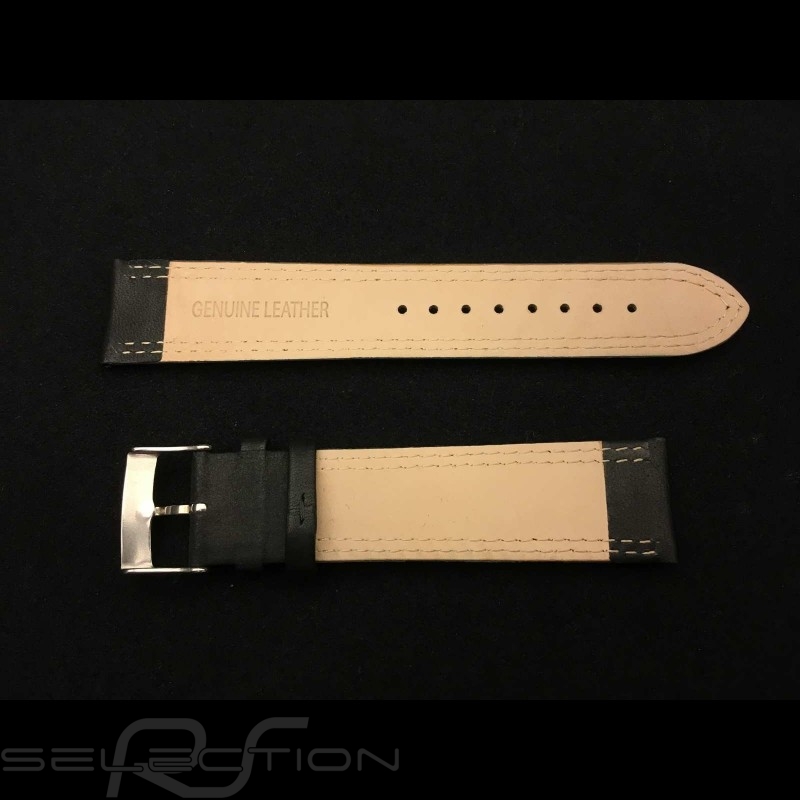 Uhrenarmband Racing Team schwarz Leder / Gulfblau und orange Stitching