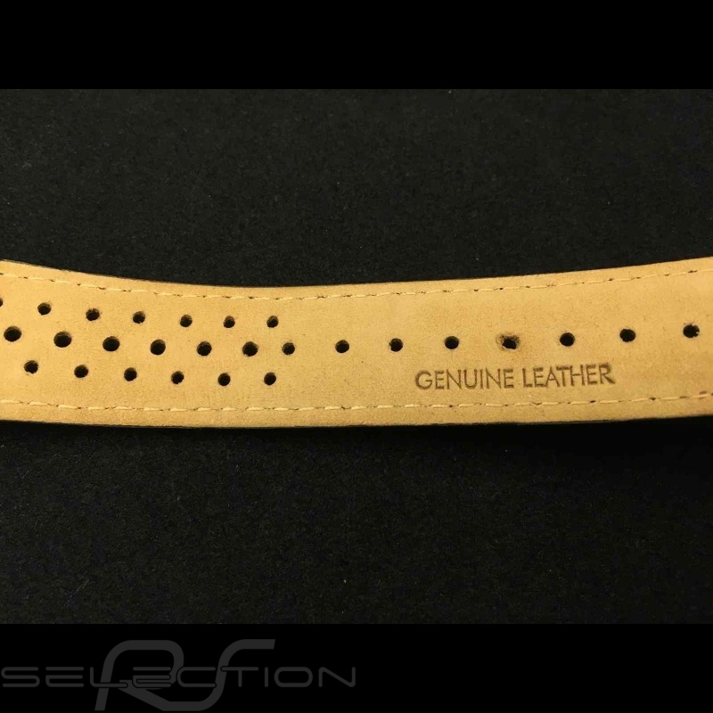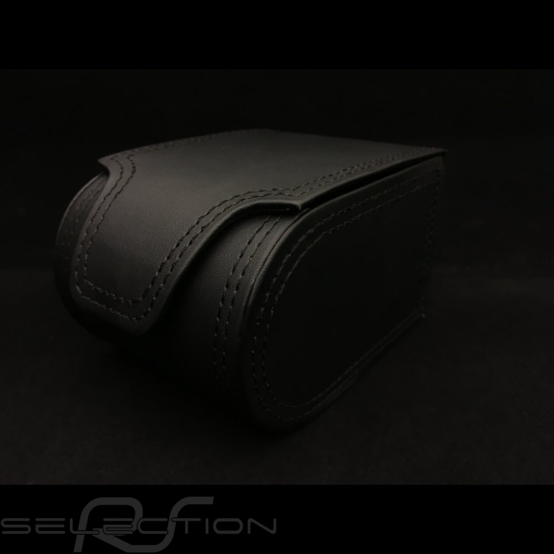 Das schwarze Edelstahlgehäuse und das schwarze Lederarmband verbinden Modernität mit Respekt vor dem Porsche-Spirit.