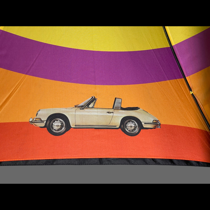 Trotzen Sie den Elementen mit der Kühnheit der Pop-Art der 1960er Jahre. Dieser Regenschirm ist eine Hommage an den revolutionären 911 Targa und fängt den Geist der Freiheit und die ikonische Sicherheit seines Stahl-Überrollbügels durch ein lebendiges und zeitloses Design ein.