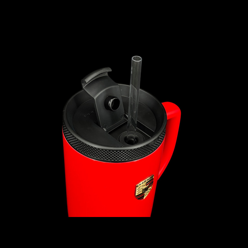 Nehmen Sie die DNA des 911 GT3 S/C überallhin mit – mit diesem doppelwandigen, isolierten Edelstahlbecher, der Ihre Getränke länger heiß oder kalt hält. Das sportliche Design in Indischrot mit Porsche-Wappen und geprägtem Schriftzug auf dem Deckel macht sie zum stilvollen Begleiter im Alltag – ob zu Hause, im Büro oder auf Reisen. 100 % auslaufsicher, mit wiederverwendbarem Strohhalm und einem großzügigen Fassungsvermögen von ca. 1 Liter vereint sie Leistung und Funktionalität im typischen Porsche-Stil.