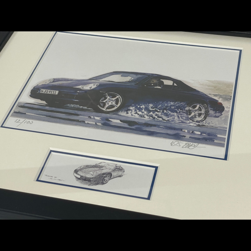 Porsche Rahmen 911 Typ 996 Cabriolet 1997 Schwarzer Holzrahmen mit Skizze 25 x 30 cm - Uli Ehret