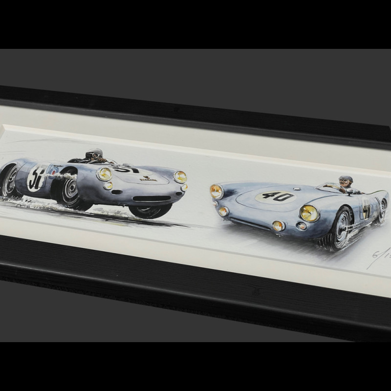 Porsche Rahmen 550 Spyder n° 37 24h Le Mans 1954 Schwarzer Holzrahmen 38 x 15 cm - Uli Ehret