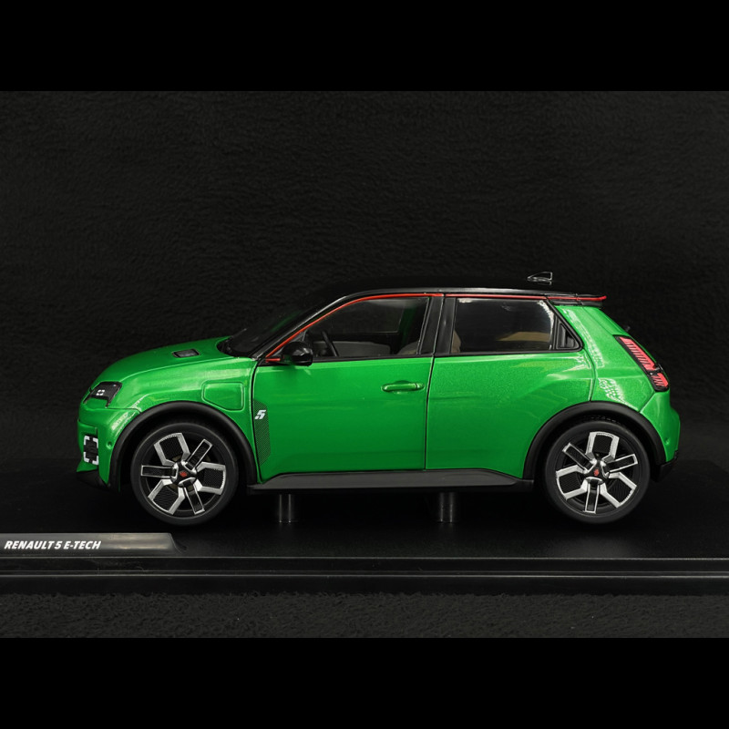 Dieses Miniaturmodell des Renault 5 E-Tech 2024 im Maßstab 1:18 in Pop Green ist ein Solido-Modell aus Metallguss. Die leuchtend grüne Lackierung unterstreicht perfekt die neo-retro und urbane Ausrichtung des echten Elektroautos R5. Mit zu öffnenden Teilen, einer Metallkarosserie, präzise gefertigten Fenstern und einer Länge von ca. 22–23 cm macht es sich hervorragend in der Vitrine neben anderen modernen Kompaktwagen.