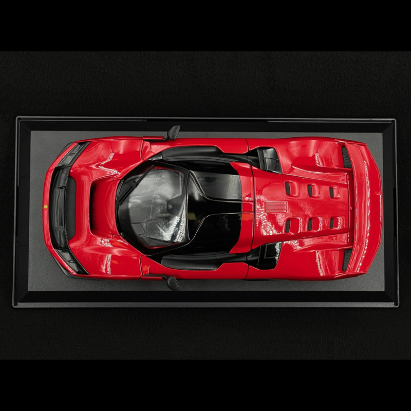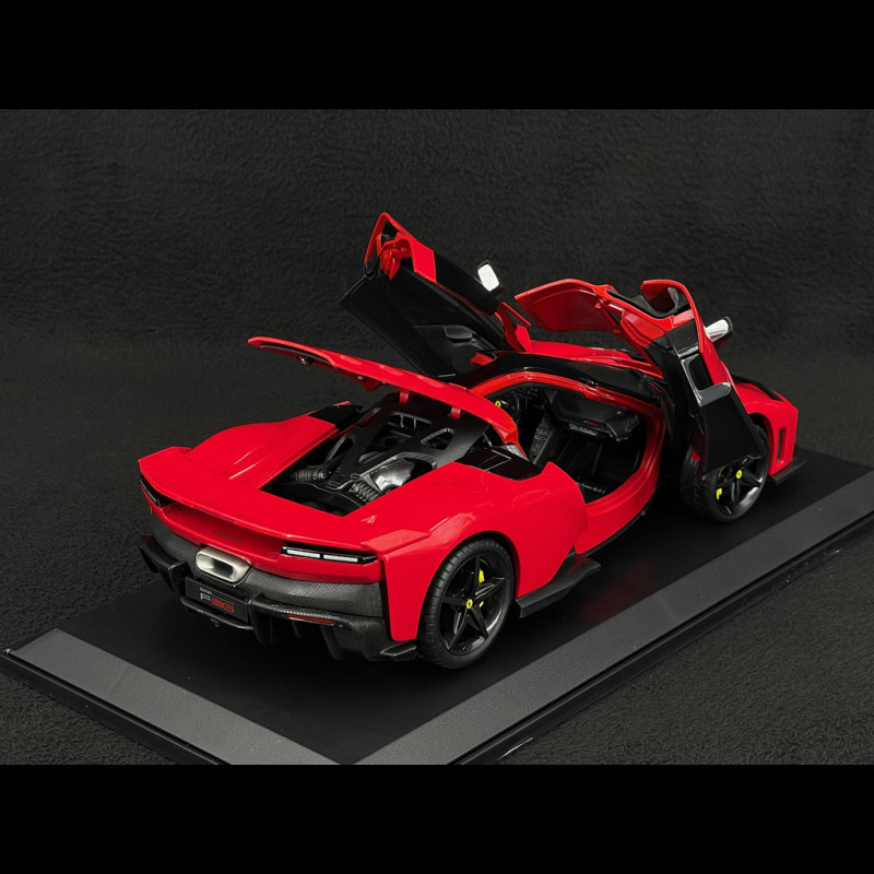 Der Ferrari F80 im Maßstab 1:18 von Bburago zeichnet sich durch seine hervorragende Detailtreue aus, die dem realen Modell entspricht. Dank seiner zahlreichen zu öffnenden Teile (Türen, Motorhauben) ermöglicht er einen perfekten Blick auf den Innenraum, den Motorraum und die Oberflächen, was diese Nachbildung zu einem idealen Stück für Liebhaber und Sammler macht.