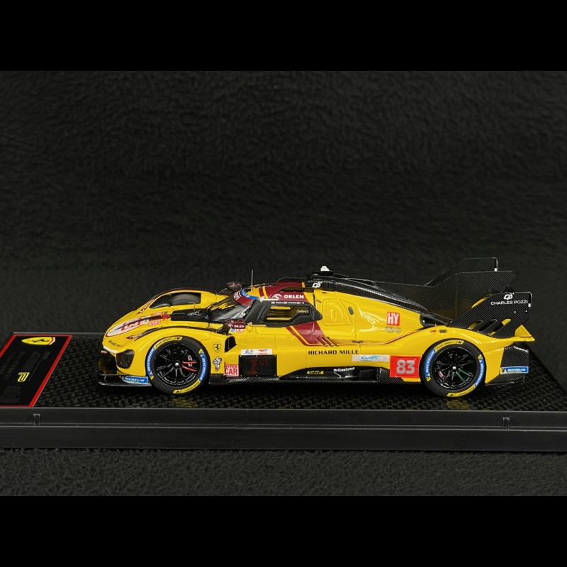 Dieses Modell ist der Ferrari 499P #83 im Maßstab 1:43, hergestellt von BBR. Es bildet den AF Corse-Rennwagen nach, der 2025 mit der Fahrerbesetzung Kubica/Ye/Hanson die 24 Stunden von Le Mans gewann.