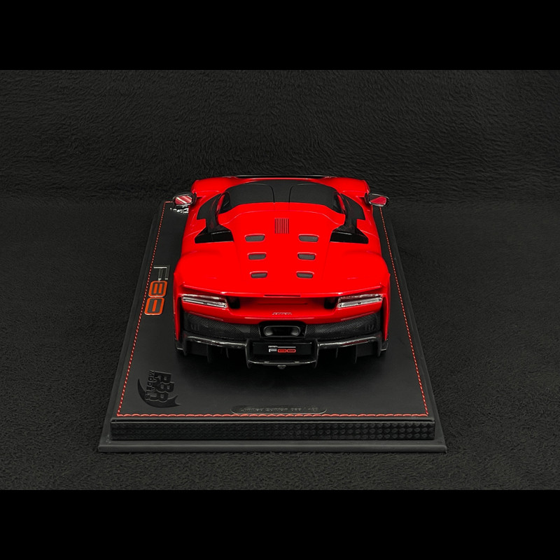 Dieses Ferrari F80-Modell im Maßstab 1:18 in Rosso Corsa von BBR ist eine Resin-Miniatur ohne zu öffnende Teile. Sie bildet den Hypercar in der ikonischen Rosso Corsa-Konfiguration mit zweifarbigen silber/carbonfarbenen Felgen detailgetreu nach und greift damit den typischen Kontrast der F80-Modelle mit Carbon-Exterieurpaket auf. Die auf einem Sockel montierte Miniatur hebt die Karosseriedetails (Frontsplitter, Diffusor, Heckflügel und Lichtsignatur) sowie das Design der zweifarbigen Felgen hervor und ist somit ein ideales Ausstellungsstück für eine Vitrine, die modernen Ferrari-Hypercars und Konfigurationen mit der markentypischen rot/hellen Felgendesignsprache gewidmet ist.