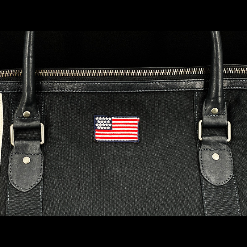 Diese marineblaue 48H-Tasche aus Leder und Baumwolle vereint Vintage-Stil mit Rennsport-Einflüssen. Ihre rechteckige Form, die robusten Griffe und die Kabinengröße machen sie ideal für Kurztrips. Die Carroll-Shelby-Streifen und -Patches erinnern an die Rennsport-Tradition und verleihen der Tasche eine sportliche Note, ohne die Eleganz des Leders zu beeinträchtigen. Dank des großen Hauptfachs mit Reißverschluss, der zusätzlichen Fächer und des abnehmbaren Schultergurts ist sie ein praktisches Gepäckstück, perfekt für leichtes Reisen und gleichzeitig ein echter Hingucker. Ideal für Shelby-Fans und Kenner edler Stücke, die eine vielseitige Tasche suchen, die sich sowohl für ein Rennwochenende als auch für eine Geschäftsreise eignet.
