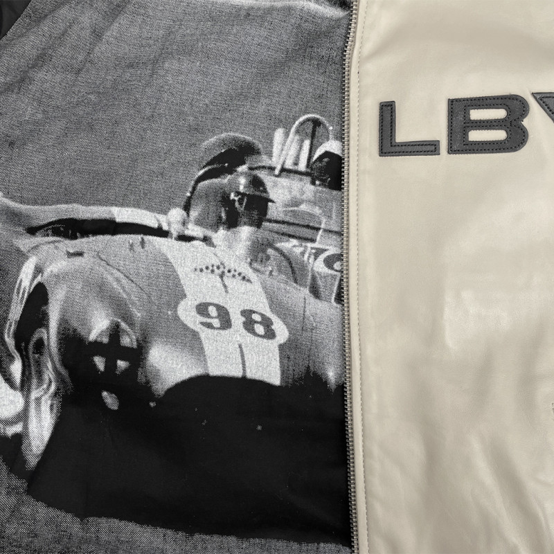 Diese ecrufarbene Lammlederjacke im Bomberjacken-Stil mit verstärkten Nähten und Schulterpartien verleiht ihr einen klassischen, modernen Paddock-Jacken-Look. Das Carroll Shelby-Branding und die Rennsportdetails sind dezent, aber präsent und sorgen für einen eleganten Look, der sowohl zu Jeans als auch zu Chinos passt. Diese Jacke aus geschmeidigem und strapazierfähigem Sheep Crown-Leder bietet höchsten Tragekomfort im Alltag. Sie verfügt über ein hochwertiges Futter, je nach Ausführung einen Biker- oder Officer-Kragen und praktische Taschen. Für Shelby-Fans, die eine Premium-Jacke im Stil des amerikanischen Rennsports suchen, ohne dabei zu protzig zu wirken, ist sie das perfekte Kleidungsstück.