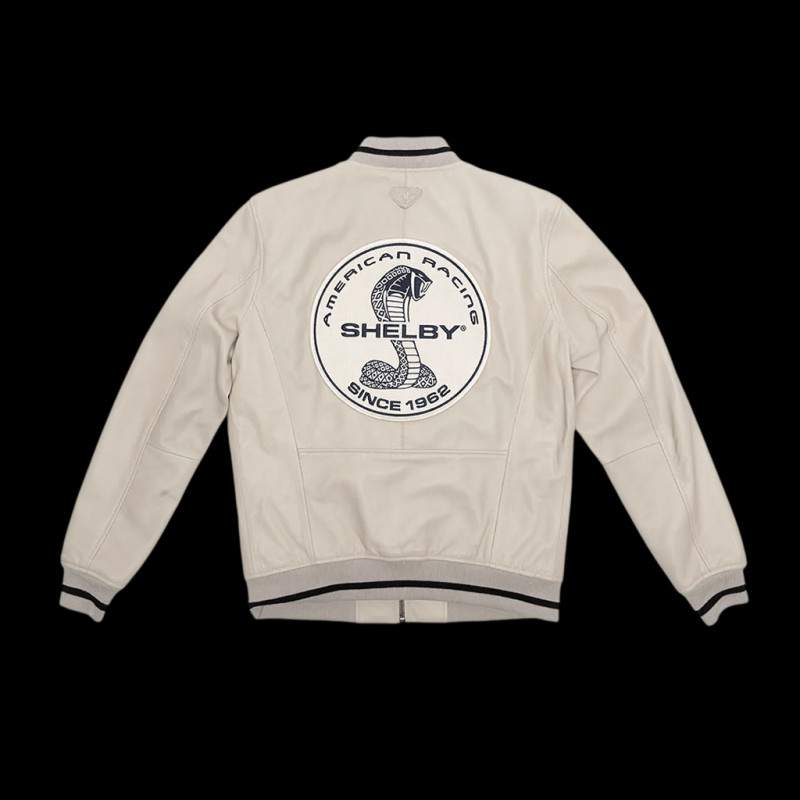 Diese ecrufarbene Lammlederjacke im Bomberjacken-Stil mit verstärkten Nähten und Schulterpartien verleiht ihr einen klassischen, modernen Paddock-Jacken-Look. Das Carroll Shelby-Branding und die Rennsportdetails sind dezent, aber präsent und sorgen für einen eleganten Look, der sowohl zu Jeans als auch zu Chinos passt. Diese Jacke aus geschmeidigem und strapazierfähigem Sheep Crown-Leder bietet höchsten Tragekomfort im Alltag. Sie verfügt über ein hochwertiges Futter, je nach Ausführung einen Biker- oder Officer-Kragen und praktische Taschen. Für Shelby-Fans, die eine Premium-Jacke im Stil des amerikanischen Rennsports suchen, ohne dabei zu protzig zu wirken, ist sie das perfekte Kleidungsstück.