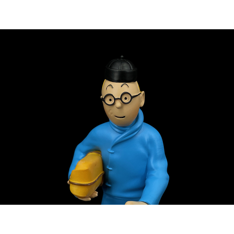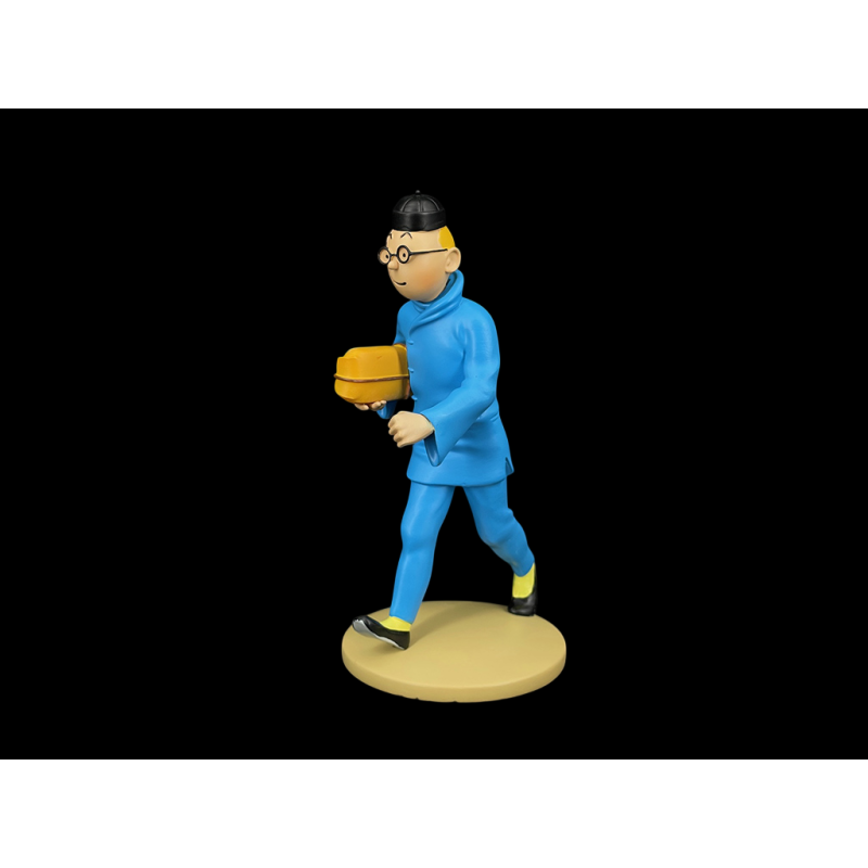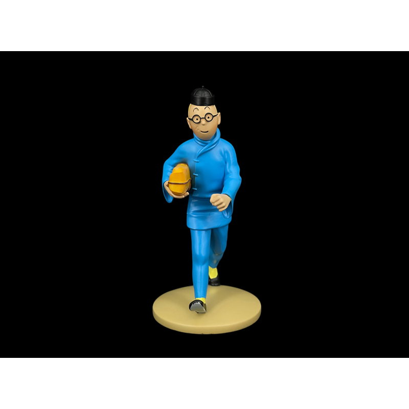 Diese aus Kunstharz gefertigte Figur ist Teil einer Kollektion von Statuetten, die dem Stil und den Details von Hergés Zeichnungen treu bleiben. Nach einem Besuch bei Familie Wang kehrt Tim nach Shanghai zurück, um eine Phiole mit Radjaidschas Saft, dem gefürchteten „Gift, das einen in den Wahnsinn treibt“, analysieren zu lassen. Trotz einiger Abenteuer gelingt es ihm, diese gefährliche Fracht Professor Fan-Se-Yeng zu übergeben.