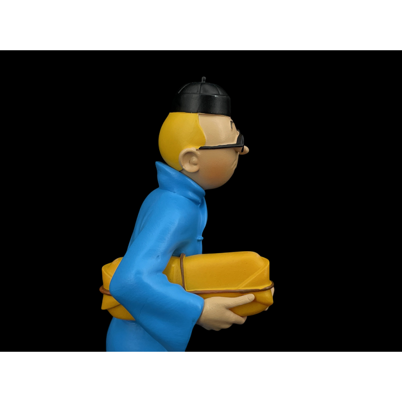 Tim-und-Struppi-Figur – Tim mit einem Paket