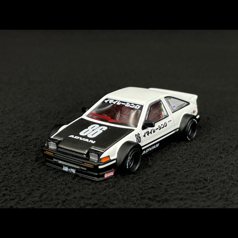 Toyota Sprinter Trueno AE86 n° 86 Kaido Works IMAI Racing V1 1983 Weiß 1/64 Mini GT KHMG180