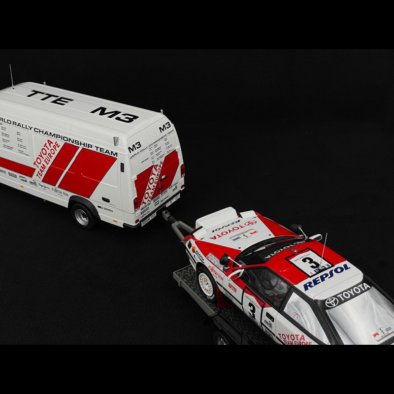 Dieses Ottomobile-Modell im Maßstab 1:18 reproduziert das Rallye-Auto Celica GT-Four zusammen mit einem Mercedes-Benz T1-Begleitfahrzeug und einem Anhänger und bietet so eine komplette Wettkampfszenerie. Das aus Resin gefertigte und sorgfältig verarbeitete Set in limitierter Auflage unterstreicht die Atmosphäre afrikanischer Rallyes und ist ein besonders attraktives Stück für Sammler historischer WRC-Modelle.