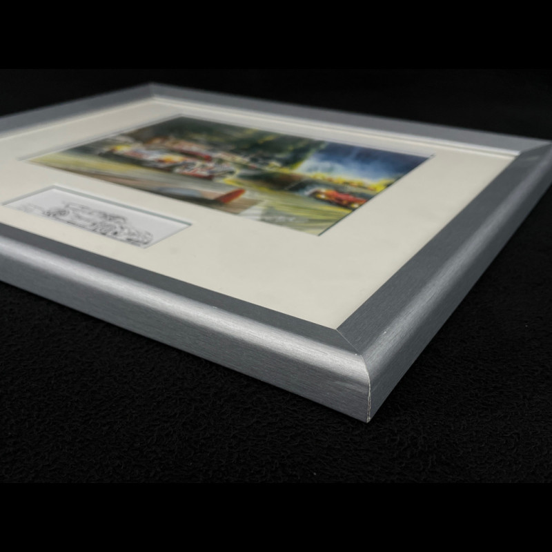 Porsche Rahmen 911 RSR Type 991 n° 76 Sieger 24h Le Mans 2007 Grauer Holzrahmen mit Skizze 25 x 30 cm - Uli Ehret