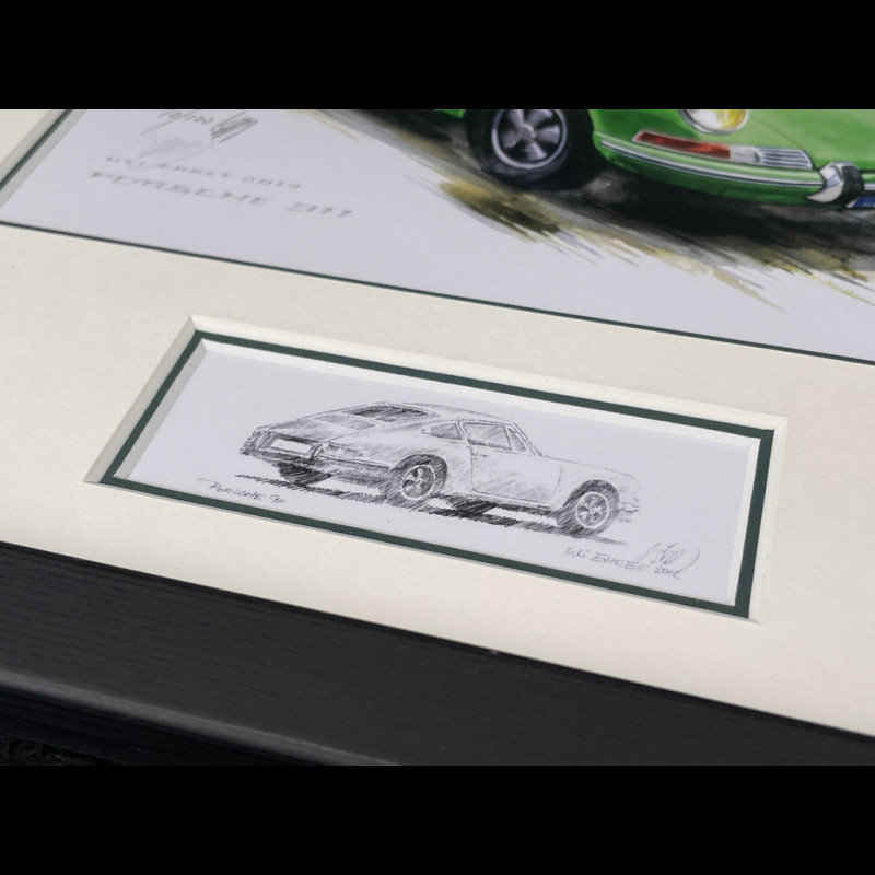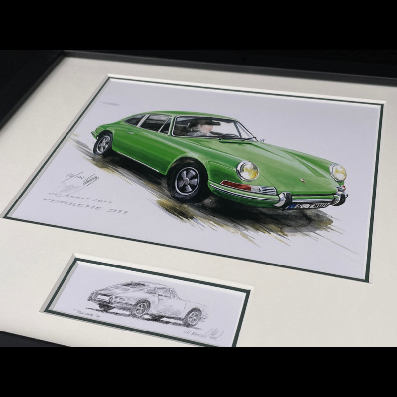 Porsche Rahmen 911 Coupe 1964 Schwarzer Holzrahmen mit Skizze 25 x 30 cm - Uli Ehret