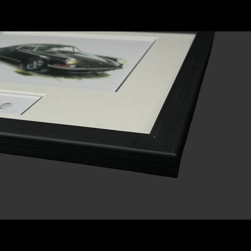 Porsche Rahmen 911 Coupe 1964 Schwarzer Holzrahmen mit Skizze 25 x 30 cm - Uli Ehret