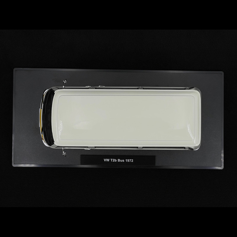 Die silberne Lackierung des Modells betont die Oberflächen und charakteristischen Details des T2B: Stoßstangen, runde Scheinwerfer, Türgriffe und Räder sind originalgetreu nachgebildet. Die Lackierung ist präzise aufgetragen, und jedes äußere Element trägt zur Authentizität des Modells bei.