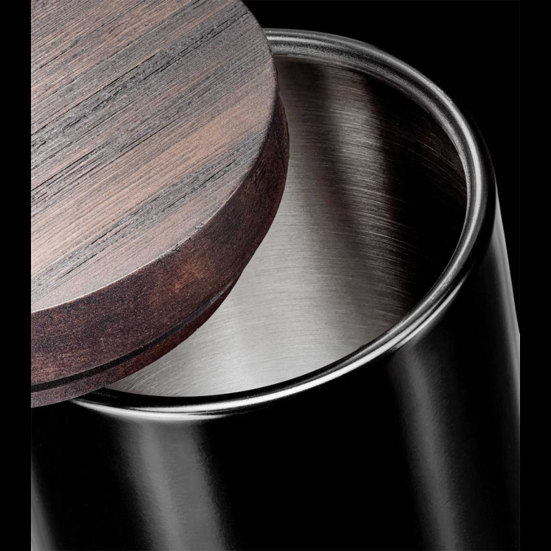 Anspruchsvolles, elegantes Design durch die Kombination von Mattschwarz und Holz