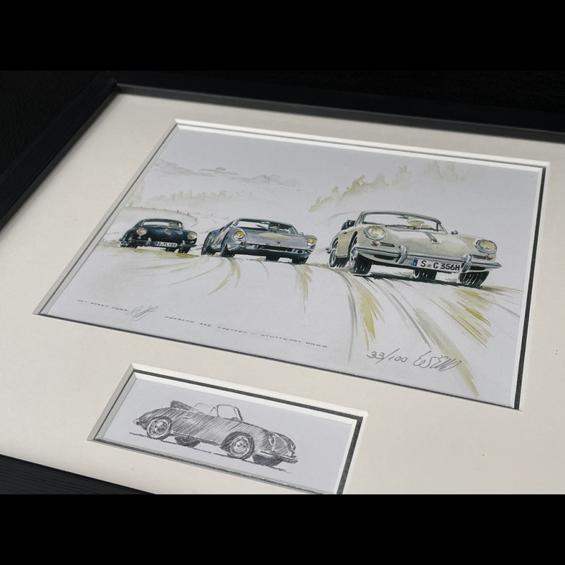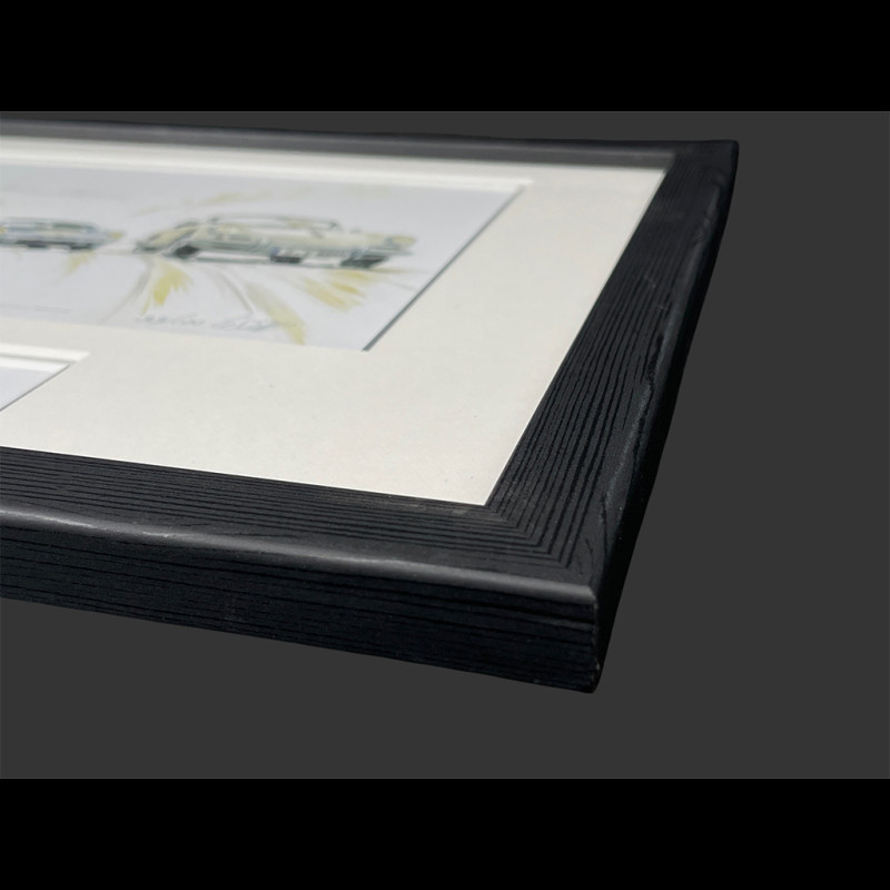 Porsche Rahmen 356 C / 904 / 356 A Coupé 1963 Schwarzer Holzrahmen mit Skizze 25 x 30 cm - Uli Ehret