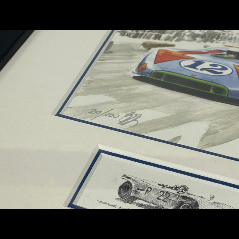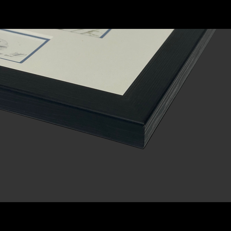 Porsche Rahmen 908/3 N° 12 Jo Siffert Sieger "Targa Florio" 1970 Schwarzer Holzrahmen mit Skizze 25 x 30 cm - Uli Ehret