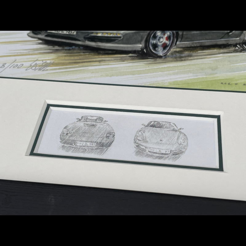 Porsche Frame Boxster 2010 Black Wooden Frame with Sketch 25 x 30 cm - Uli Ehret