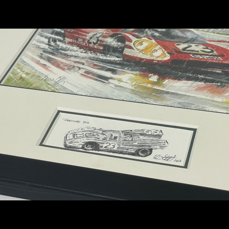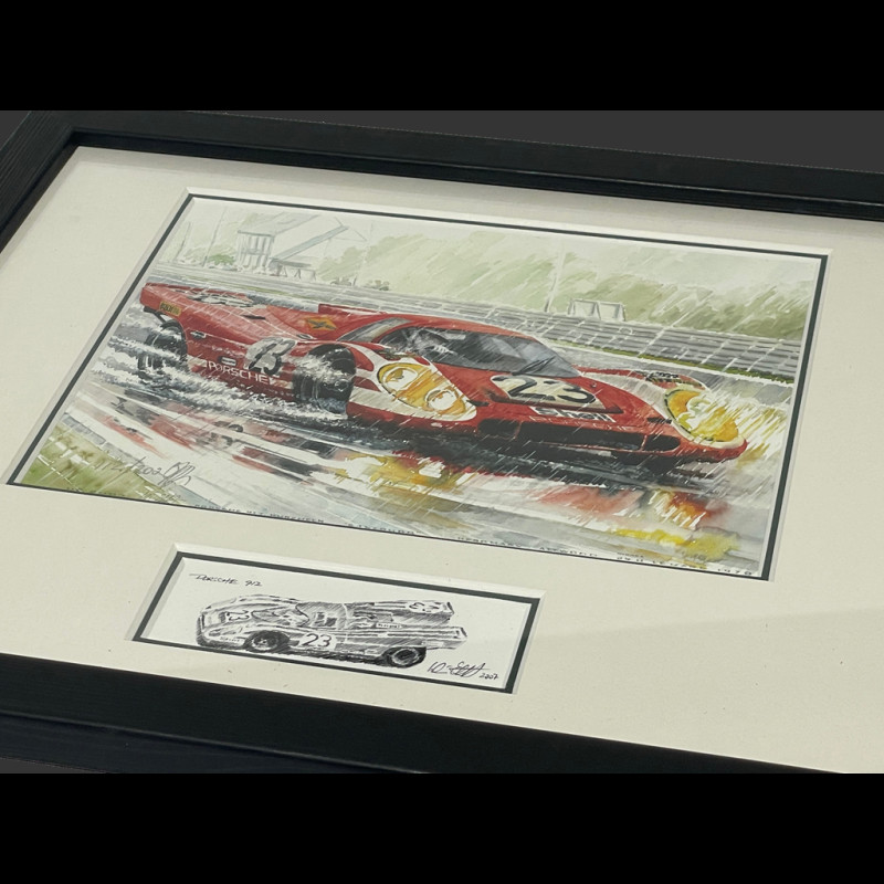 Porsche Frame 917 KH n° 23 Winner 24h Le Mans 1970 Black Wooden Frame with Sketch 25 x 30 cm - Uli Ehret