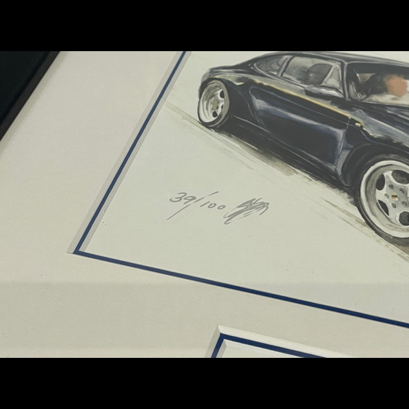 Porsche Frame 911 Coupe Type 993 1998 Black Wooden Frame with Sketch 25 x 30 cm - Uli Ehret