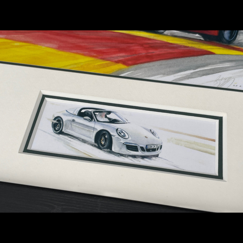Porsche Frame 911 Coupe Type 991 2019 Porsche Speed Cup Spa Black Wooden Frame with Sketch 25 x 30 cm - Uli Ehret