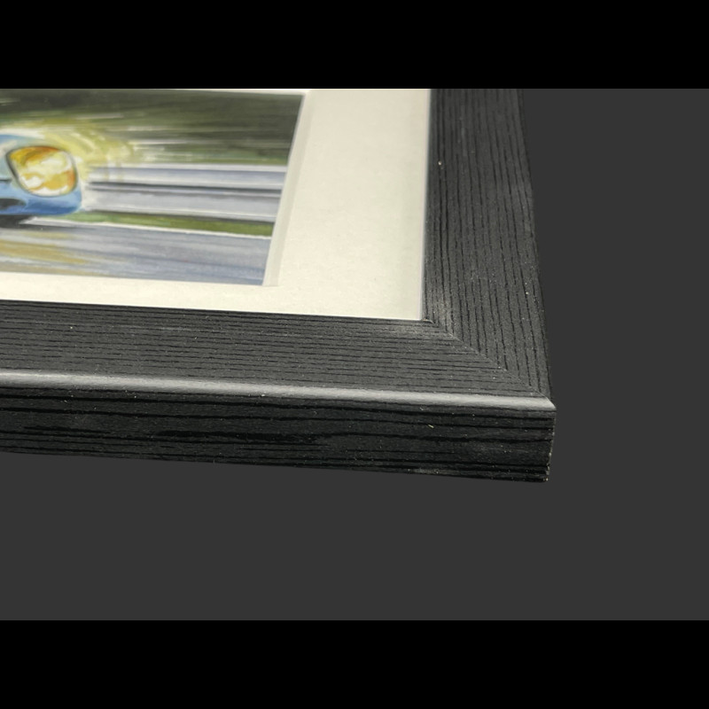 With a black-painted wooden frame, mat and protective glass