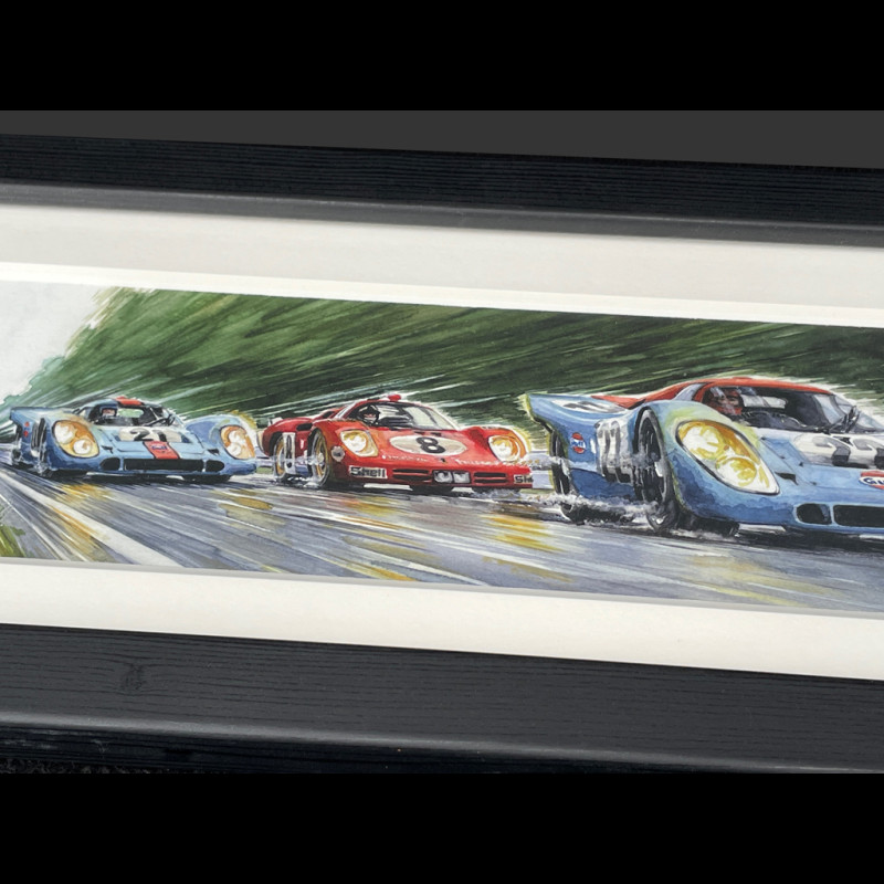 Steve McQueen Frame Porsche 917 KH n° 21 24h Le Mans 1970 Black Wooden Frame 38 x 15 cm - Uli Ehret