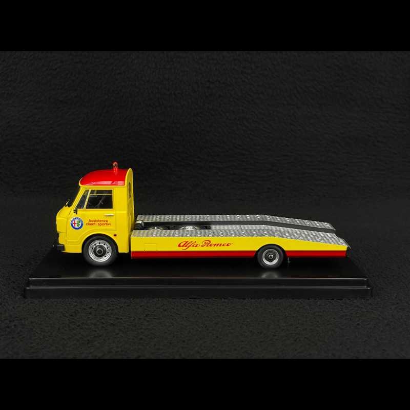 Mitica offers the 1977 Alfa Romeo A12 (F12) recovery truck in 1/43 scale, in a yellow livery with red accents that emphasize the utilitarian and highly visible nature of the assistance vehicle. Made of metal with added parts, the miniature reproduces the typical A12 cab, the rear towing structure and the tow truck markings, for a piece with retro charm ideal in a display case of Italian service vehicles.