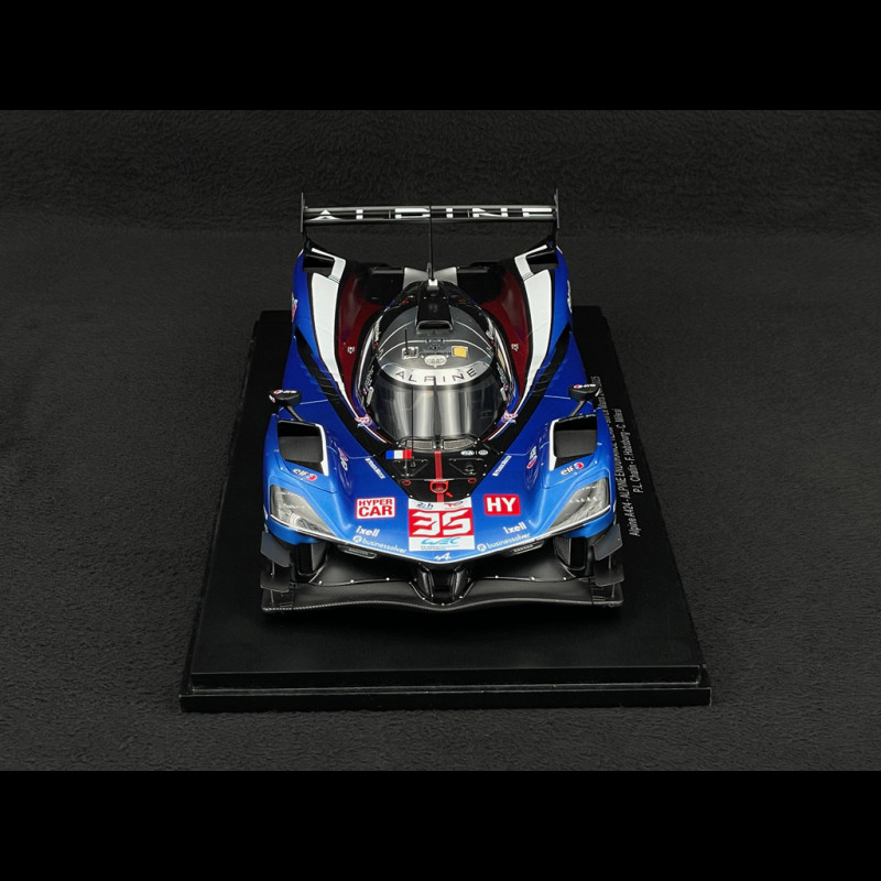 This 1/18 scale Alpine A424 #35 24 Hours of Le Mans 2025 model by Spark reproduces the Alpine Endurance Team Hypercar with its futuristic silhouette, blue/white/red livery, and all official markings, including the Chatin/Habsburg/Milesi names on the interior. Made of resin and presented on a display base, it highlights the complex aerodynamics (wing, fins, diffuser), racing wheels, and meticulous finish, making it ideal for a display case dedicated to French Hypercars and the modern 24 Hours of Le Mans.
