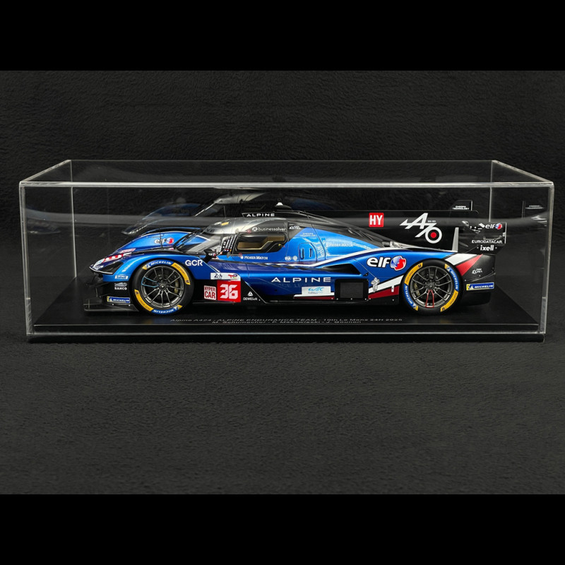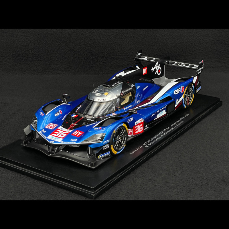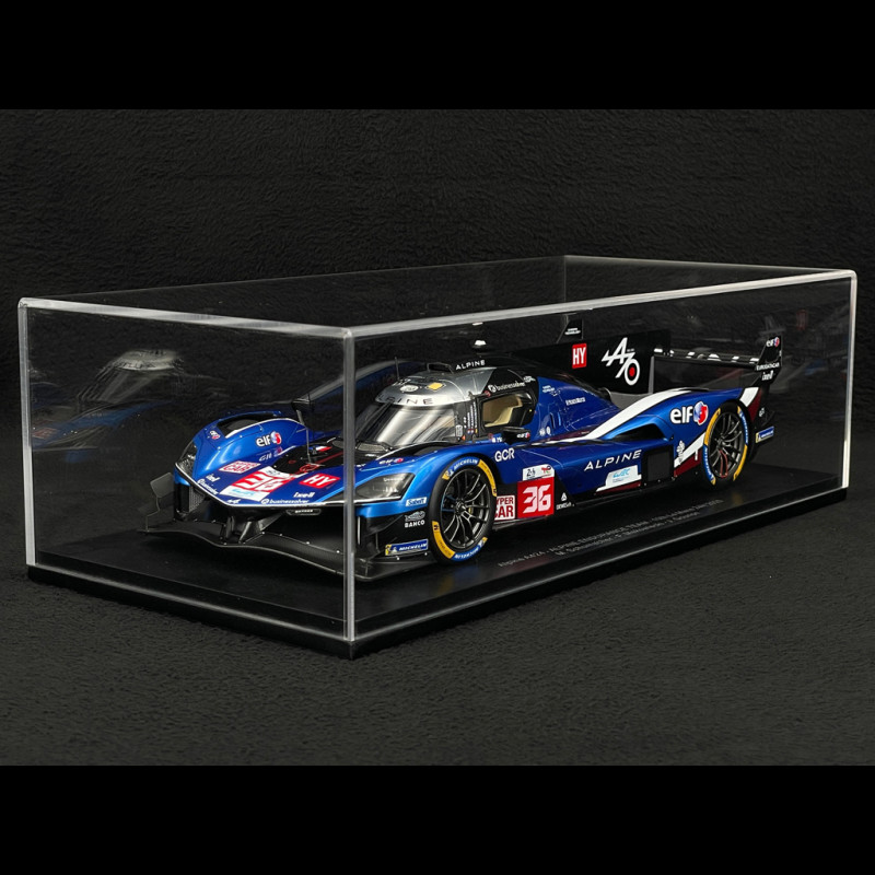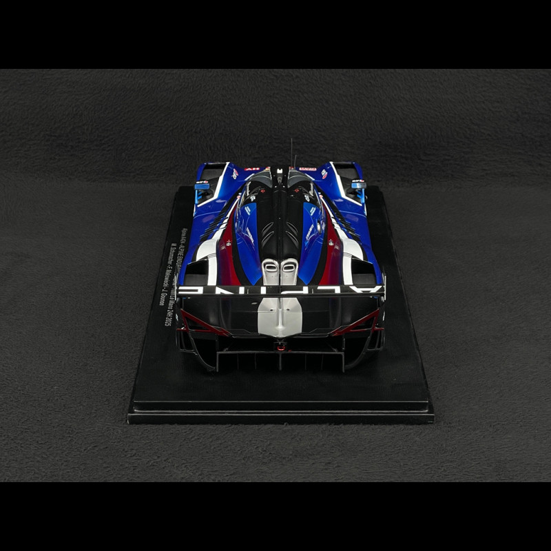This 1/18 scale Alpine A424 #36 24 Hours of Le Mans 2025 model by Spark reproduces the Alpine Endurance Team Hypercar in its iconic blue, white, and black livery, complete with all official markings and the Schumacher/Makowiecki/Gounon driver names on the interior. Made of resin and presented on a display base, the miniature highlights the A424's aerodynamic signature (wing, fins, and sloping nose), racing wheels, and meticulous details, making it the perfect addition to a display case dedicated to French Hypercars and the modern 24 Hours of Le Mans.