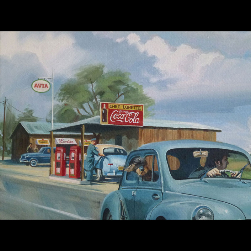 Poster Renault 4CV and NC.858 "Passing through Chez Lorette with my 4CV" 70 x 50 cm original drawing by Benjamin Freudenthal