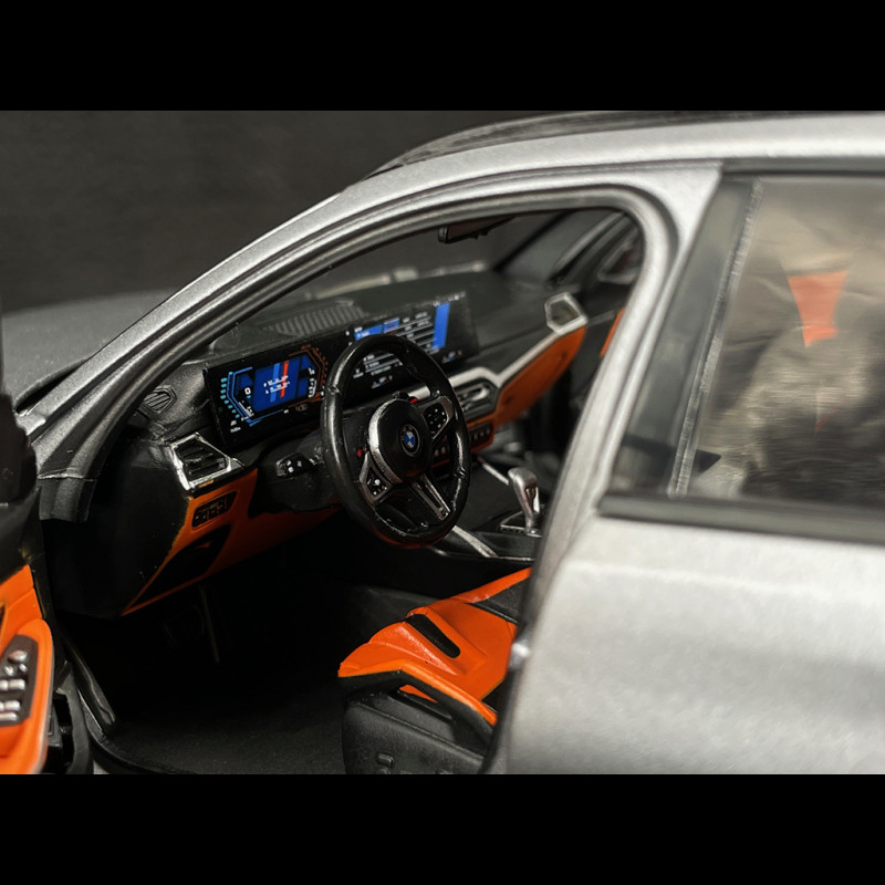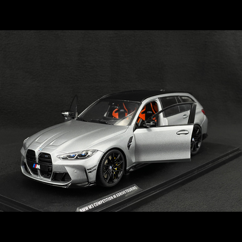 The 1:18 scale BMW M3 Touring Performance 2024 model, produced by Solido, faithfully reproduces the high-performance station wagon from the BMW M3 G81 range in a modern and elegant "Frozen Pure Grey" metallic finish. This diecast model accurately captures the proportions, body details, and dynamic lines of the original, offering a highly convincing visual presence on a smaller scale. Opening front doors and steerable wheels enhance the realism of this model, allowing you to better appreciate the sporty character of the M3 Touring. It is an ideal piece for enthusiasts of contemporary sports cars or for complementing a larger model collection.