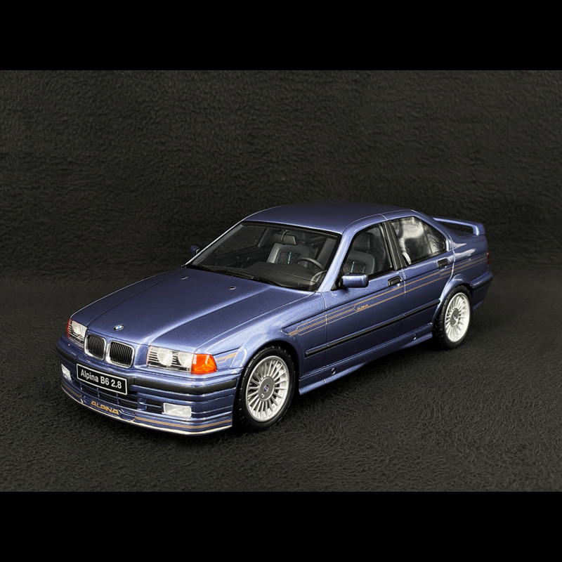 The 1:18 scale BMW E36 Alpina B6 2.8 1992 model, produced by Ottomobile, is a faithful reproduction of a refined sports sedan from the 1990s. This version showcases the deep blue livery combined with traditional Alpina touches, featuring a precisely reproduced body and perfectly accurate proportions. The elegant and subtly muscular silhouette of the original model is recreated down to the smallest detail. The high-quality finish is evident in the exterior elements: specific Alpina wheels, well-defined headlights, and trim faithful to the original. Every component reflects the spirit of the real car, highlighting Ottomobile's expertise in reproducing classic vehicles.