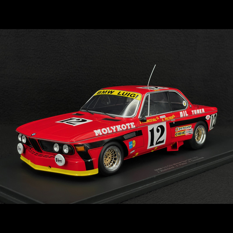 This 1/18 scale resin reproduction pays tribute to the BMW 3.0 CSi No. 12, winner of the 1974 24 Hours of Spa-Francorchamps with drivers Jean Xhenceval, Alain Peltier and Pierre Dieudonné. The period livery and official markings have been carefully reproduced, perfectly reflecting the visual identity of this BMW racing car. The details of the bodywork, wheels, lights and cockpit are finely crafted, offering striking realism. Delivered with its display case, this collector's item combines quality finish, historical authenticity and prestige, ideal for fans of classic endurance racing.