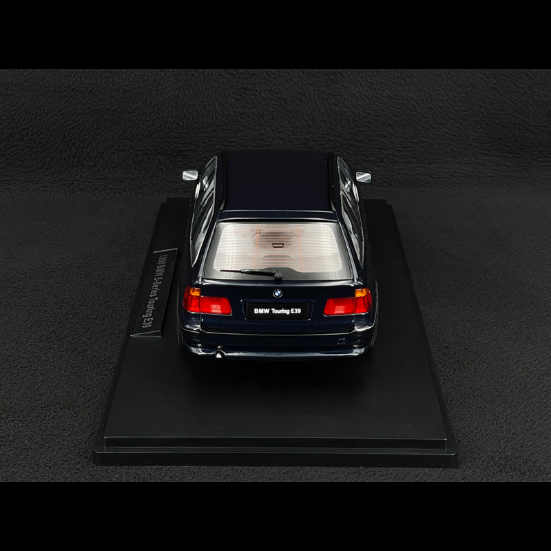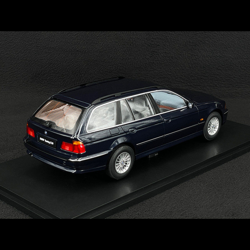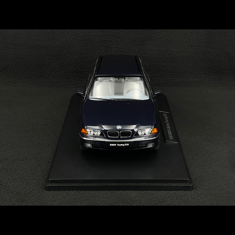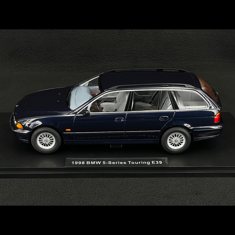 The 1/18 scale model from Triple9 presents the 1998 E39 Touring in dark metallic blue, with no opening parts, original wheels, and a tastefully reproduced interior. This midnight blue station wagon, very discreet in the shop window, pays homage to an everyday youngtimer icon, ideal to anchor on a shelf "German sedans 90s" alongside A6 Avant and E-Class station wagon.