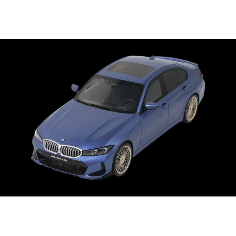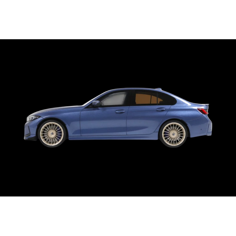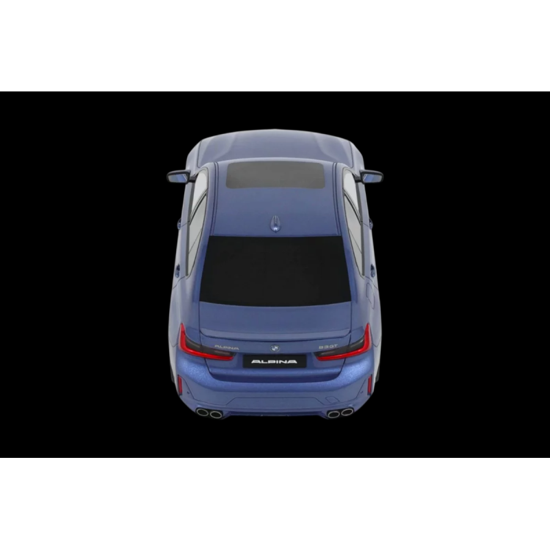 This 1/18 scale BMW Alpina B3 GT Saloon 2024 by GT Spirit reproduces Alpina's sporty sedan in its blue paint, with its specific multi-spoke wheels and discreet Alpina logos on the grille and trunk. Made of resin with no opening parts, the miniature highlights the redesigned bumpers, the dual exhaust, and the sedan's sleek lines, making it ideal for a display case dedicated to premium German tuning and high-performance BMWs.