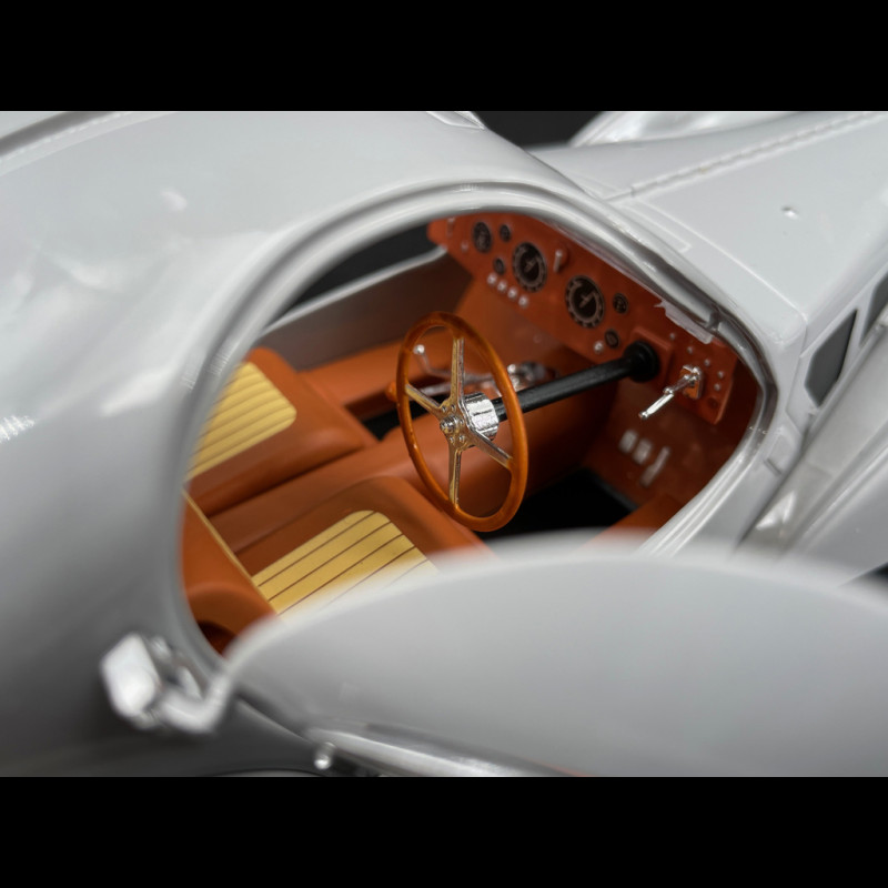 The 1937 Bugatti Atlantic Type 57 SC is one of the most legendary and rarest automobiles in history. A masterpiece of craftsmanship and design by Jean Bugatti, it blends extreme elegance, aerodynamic finesse, and a sculptural presence. Its mat silver paintwork further enhances its clean lines, long, sculpted hood, and the famous central riveted seam, which have become timeless visual signatures.