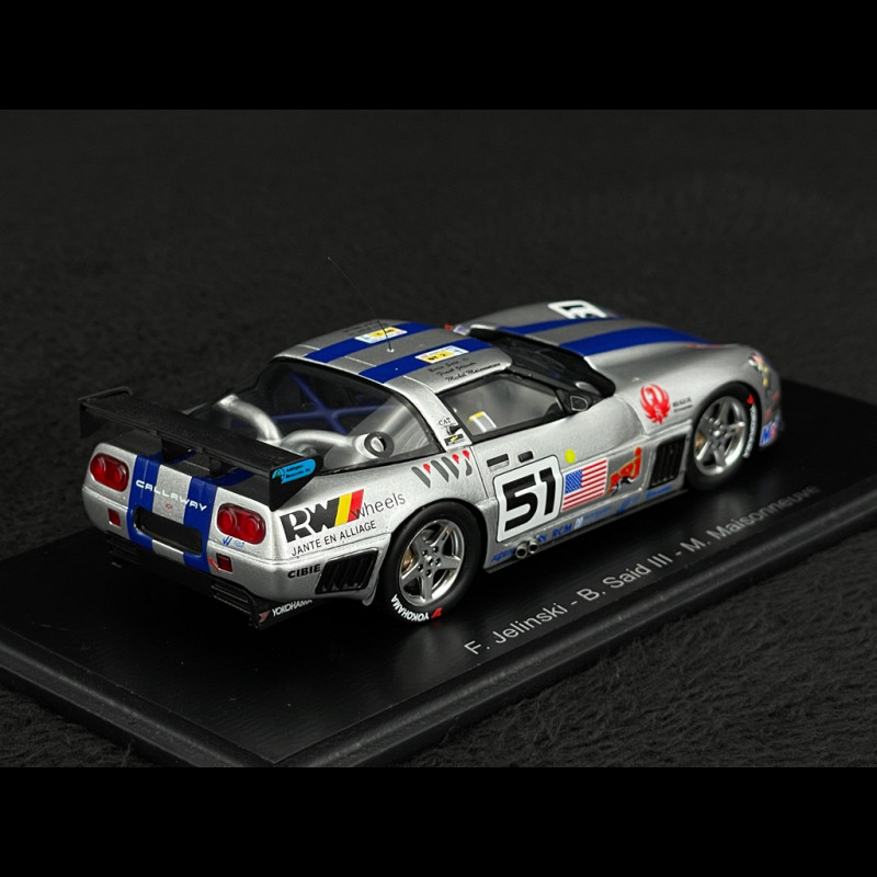 The 1:43 scale Callaway Corvette #51, produced by Spark Models, faithfully reproduces one of the cars that made their mark at the 1994 24 Hours of Le Mans. This racing Corvette, driven by Frank Jelinski, Boris Said III, and Michel Maisonneuve, is recreated here with its historic livery, authentic markings, and all the details that make classic endurance cars so appealing.