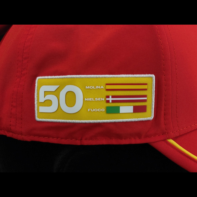 This official No. 50 hat, in red and yellow, is a direct symbol of these historic victories. By wearing it, you display your passion for the car that broke a fifty-year wait to bring Ferrari back to the top step of the Le Mans podium.