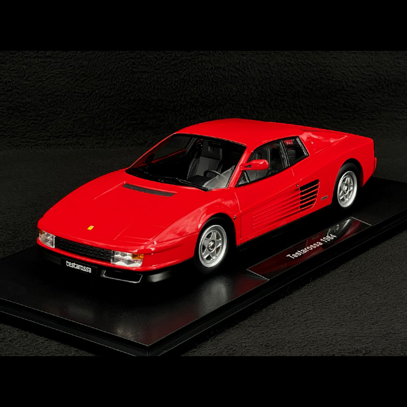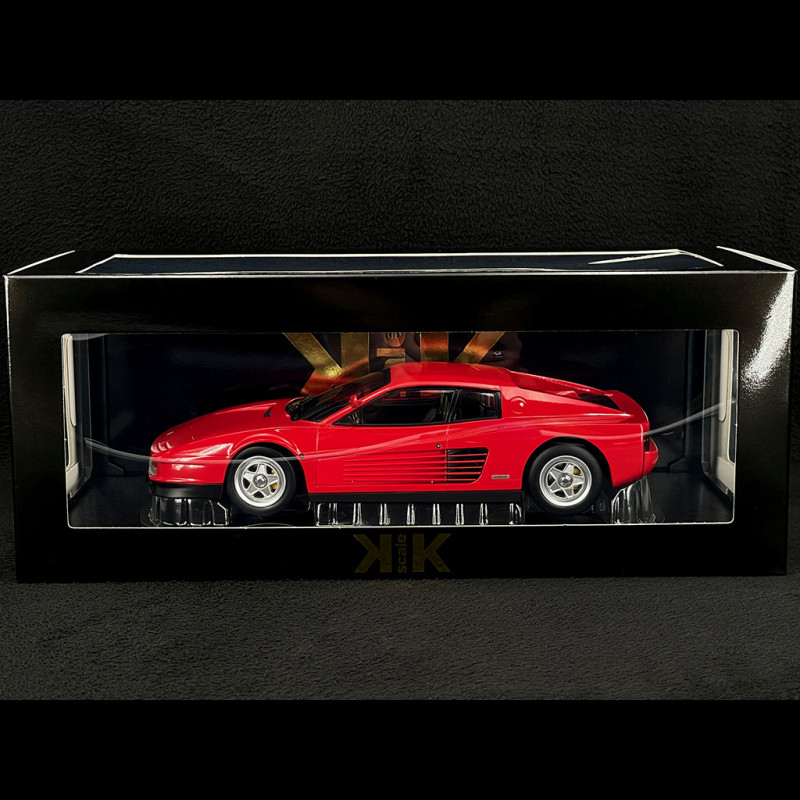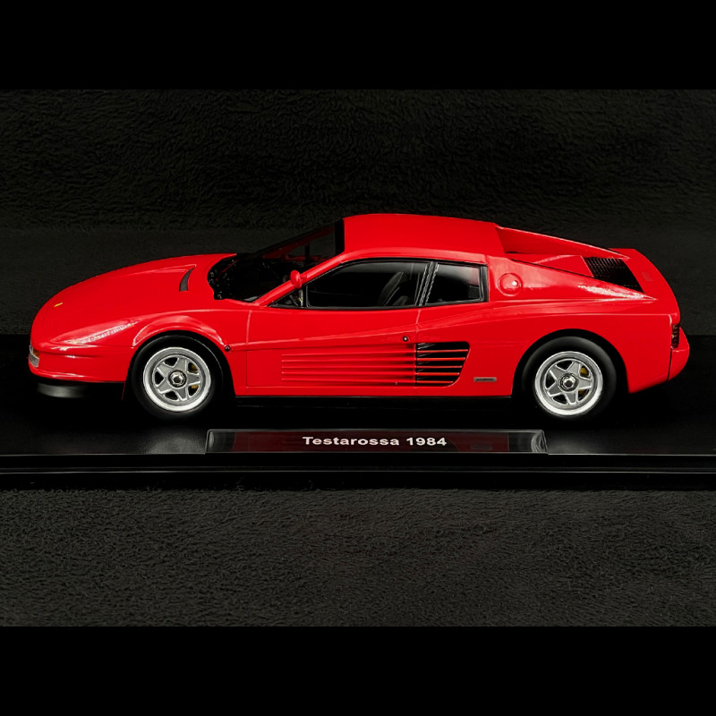 The 1/18 scale KK-Scale Ferrari Testarossa Monospecchio 1984 miniature is a faithful reproduction of the iconic Italian supercar of the 1980s. This model elegantly captures the low, wide silhouette, angular lines, and distinctive look of the Testarossa, which was one of the most emblematic Ferraris of its era.