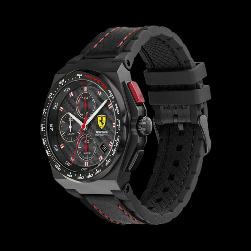 The Aspire design and carbon fiber texture of the dial clearly evoke the dashboard instruments of Ferrari racing cars, making it a truly automotive-inspired timepiece for everyday wear.