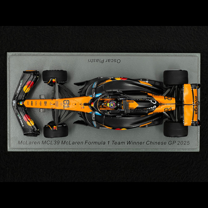 The No. 81 McLaren MCL39 driven by Oscar Piastri triumphed at the 2025 Chinese Grand Prix, giving McLaren its 50th F1 victory with a one-two finish alongside Lando Norris. Starting from pole, Piastri led the race from start to finish with a one-stop strategy, fending off attacks from his rivals to secure his first victory of the season.