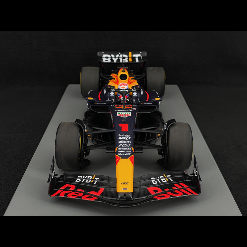Max Verstappen’s Red Bull RB19 n° 1, winner of the 2023 Qatar Grand Prix, embodies one of the most dominant F1 cars in modern history. Powered by an ultra-efficient hybrid turbo V6 and built around an exceptional aerodynamic chassis, it delivers unparalleled speed, stability, and efficiency.