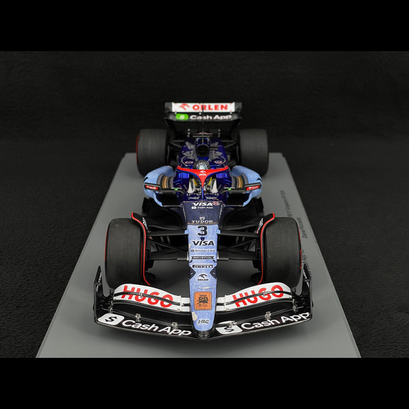 Its carbon fiber chassis, sophisticated suspension, and optimized aerodynamics ensure maximum grip and stability, essential for tackling the tight corners and long straights of the Singapore circuit. The special Visa Cash livery and Ricciardo's No. 3 add a symbolic dimension to this model, paying tribute to his career and passion for F1. The Visa Cash 01 No. 3 thus represents the culmination of Daniel Ricciardo's career, combining modern technology, cutting-edge performance, and historical emotion, making it an iconic car for all F1 fans.